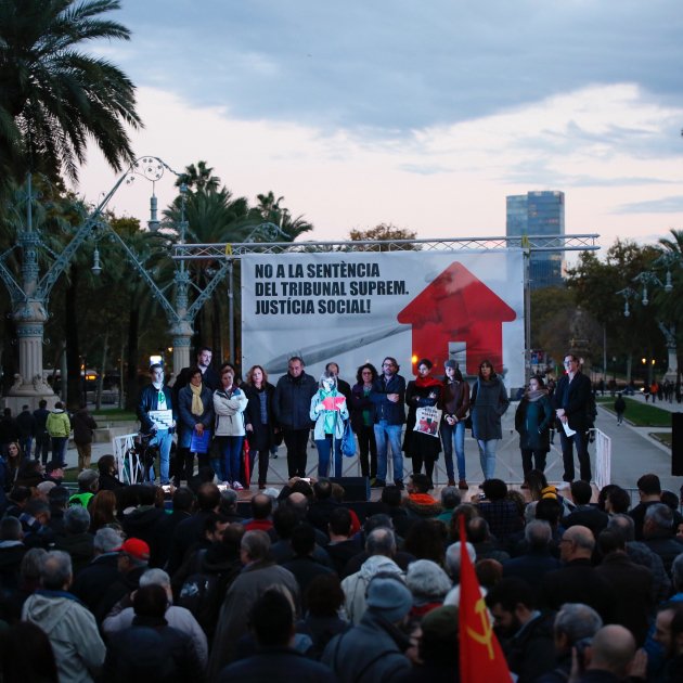 En la concentració també hi ha participat Òmnium Cultural, que ha acusat el Suprem de falta de imparcialitat perquè considera que ha cedit a les "presions" dels bancs. En declaracions a la premsa, el vicepresident de l'entitat, Marcel Mauri, ha apuntat que Jordi Cuixart també és "víctima" d'aquest tribunal i ha assegurat que, si no hi ha justícia social, no hi pot haver llibertat.