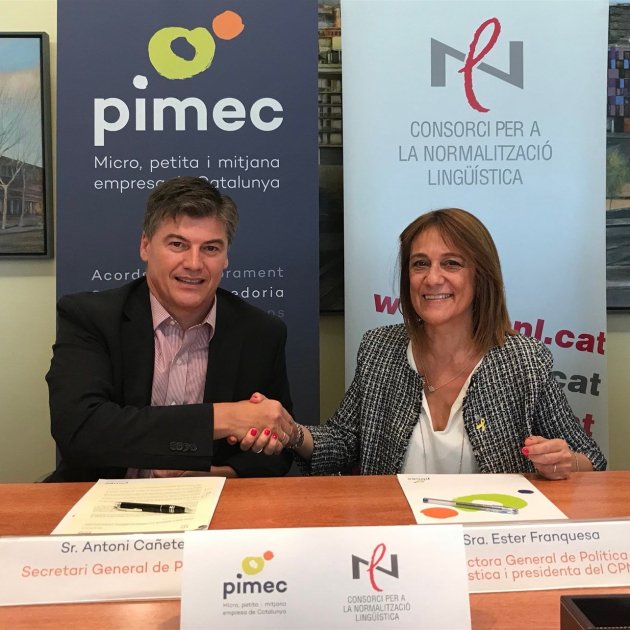 Nova aposta perquè les empreses es comuniquin en català. La patronal Pimec i el Consorci per a la Normalització Lingüística han signat un conveni per a la comunicació empresarial en català, segons ha informat la Conselleria de Cultura de la Generalitat en un comunicat aquest dimecres.
