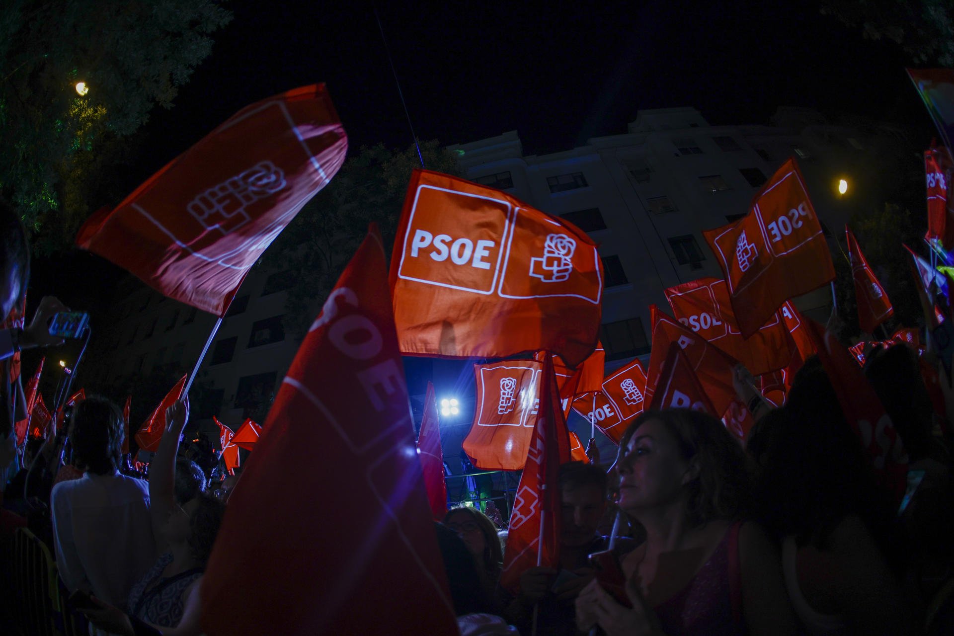 Tot i que l’escrutini ha acabat situant el PP com a líder, el bloc de dretes s’ha endut una important patacada, i això ha convertit el madrileny carrer de Ferraz en una autèntica festa. Els seguidors del PSOE han ballat cançons de Rigoberta Bandini, Rauw Alejandro i Daft Punk quan el marcador ja assenyalava que qui té més possibilitats de ser president és Pedro Sánchez.