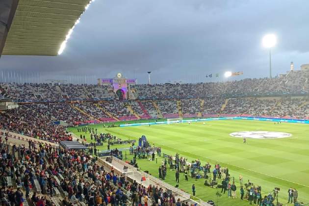 Així està Montjuic quan falten 3 hores per a l'inici del partit.