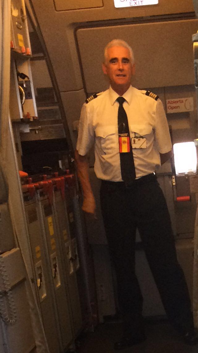 La tripulació de l'avió rep Puigdemont amb la bandera espanyola