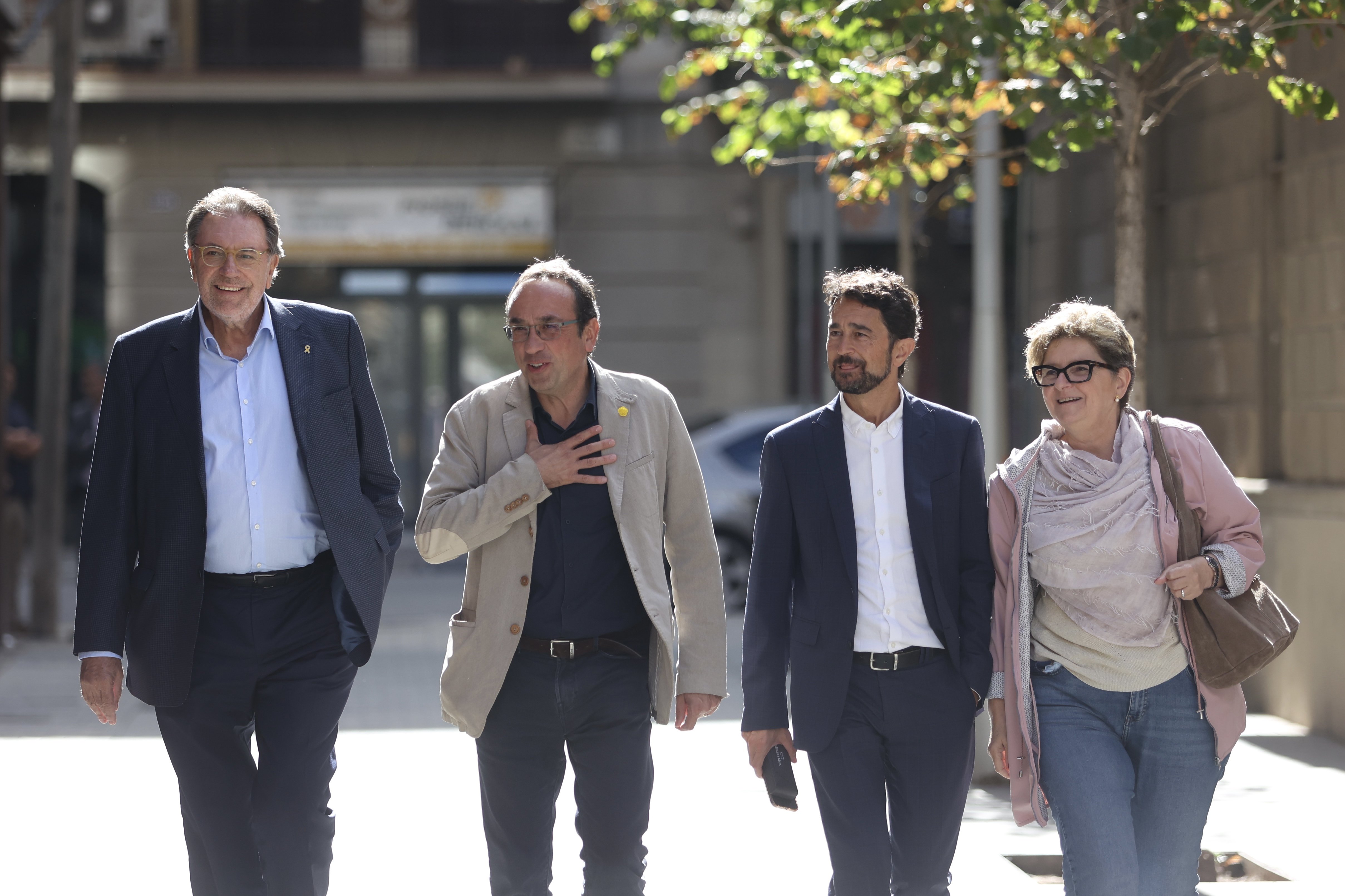 Damià Calvet, Albert Batet, Josep Rull i Mònica Sales marxen de la reunió de l'executiva de Junts.