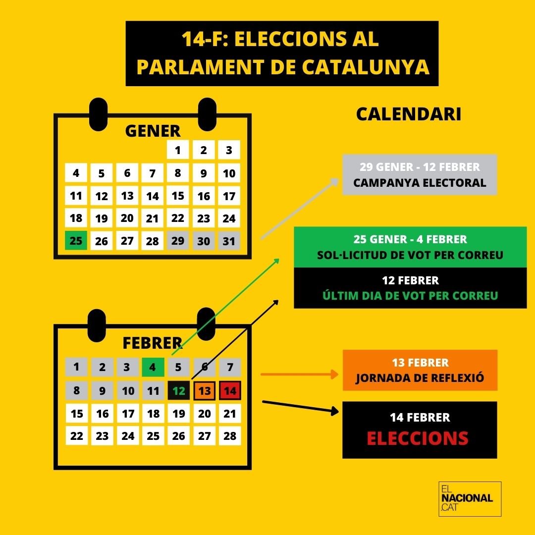 Amb la decisió del TSJC es manté el calendari inicial (quan els comicis es van situar al 14 de febrer), ara bé, hi ha hagut alguns tràmits de l'organització de les eleccions que han quedat pendents, ja que s'havien de fer entre divendres passat i avui dimarts, i altres pels quals encara hi ha marge. Aquest és el calendari: