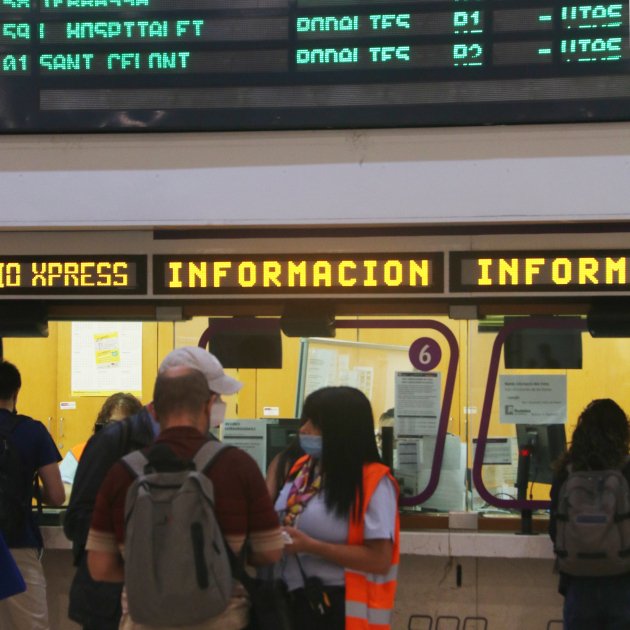 Els usuaris s'acumulen als taulells d'informació davant l'aturada de trens que ha causat la vaga de maquinistes