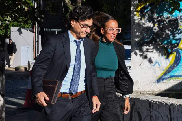 Agustina Cosachov, la qui fou la psiquiatra de Maradona, en la seva arribada als jutjats amb el seu advocat, Vadim Mischanchuk / Foto: Europa Press