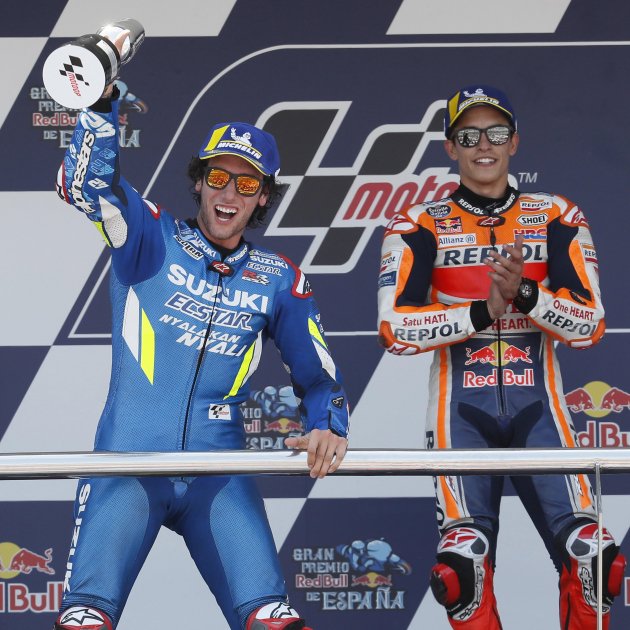 Després de creuar la meta, Rins va abandonar la moto per celebrar la victòria amb l'afició i apropar-se a una de les graderies del circuit. Aleshores, com ja és habitual, els comissaris presents es queden vigilant la moto.
