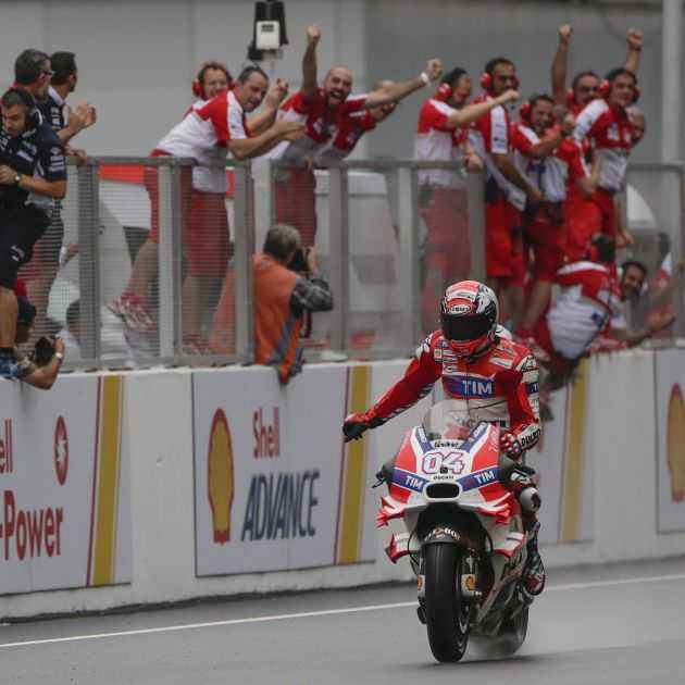 Dovizioso es va imposar a MotoGP per últim cop el 2009 a Anglaterra al circuit de Donington Park i precisament sota la pluja. A destacar una victòria d'estrena aquest 2016, acabant d'aconseguir un rècord aquesta temporada a la màxima categoria del motociclisme amb nou guanyadors diferents.