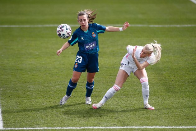 Sara i Jakobsson disputant una pilota durant el RCD Espanyol-Reial Madrid / EuropaPress