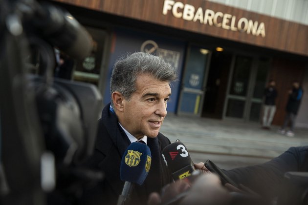 Joan Laporta, atenent els mitjans de comunicació després d'entregar les signatures / Jordi Play