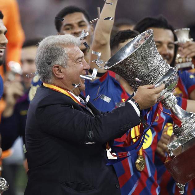 El Barça va alçar el passat diumenge la seva segona Supercopa d'Espanya consecutiva després d'imposar-se novament al Reial Madrid (3-2). Tot i que va ser una final més igualada de l'esperat, els blaugrana van ser en tot moment els dominadors, rubricant la seva victòria a la segona part amb un gol de Raphinha decisiu. Un nou títol per a l'equip de Flick que ha estat celebrat amb eufòria tant per als futbolistes culers com per a Joan Laporta. El president culer no va tardar a sumar-se a la festa blaugrana sobre la gespa i tampoc ha amagat la seva alegria atenent els mitjans de comunicació.