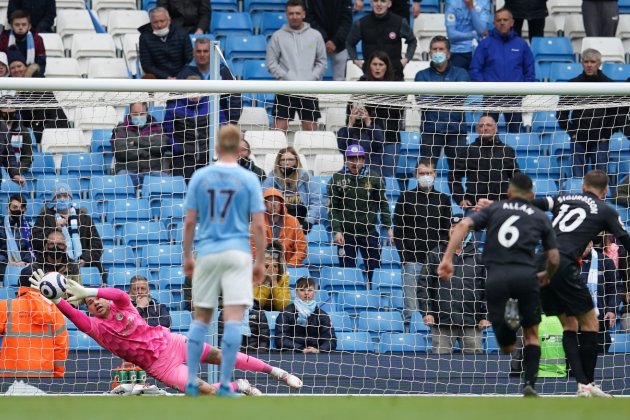 I quan els citizens han comès una errada, amb un penal en contra passada la mitja hora de joc, ha aparegut Ederson. El porter del City s'ha llançat a baix a la dreta i ha encertat la direcció del xut. Penal aturat i a continuar l'espectacle.