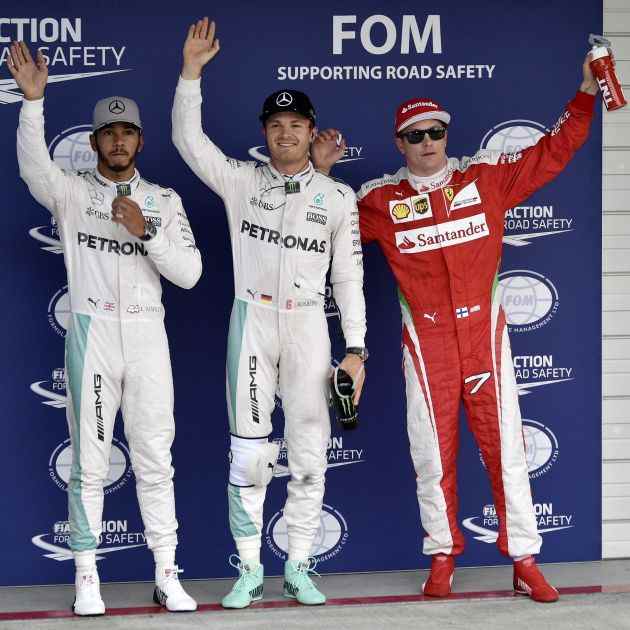 Pole position per ben poc, només 0,013 segons, per a Rosberg, i Hamilton haurà de sortir des de la segona posició. Els Mercedes no han tingut rival el dia que s'esperava pluja i no ha acabat arribant. Sobrats, lluitant per la primera posició a la graella de diumenge, els Mercedes segueixen dominant.