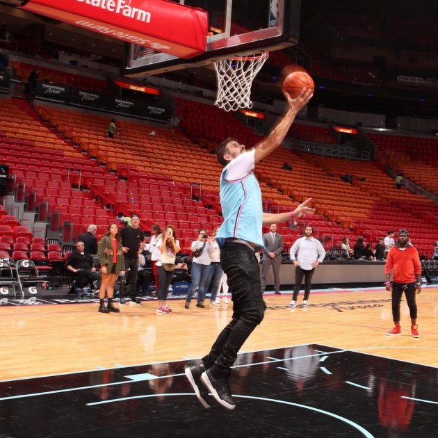 Piqué, gran aficionat al bàsquet, ha volgut demostrar que també té aptituds per practicar aquest esport i ha estat provant el seu canell des de la línia de triple i ha desafiat la gravetat amb unes esmaixades dignes dels grans jugadors de l'NBA. L'últim detall que ha tingut el club ha estat regalar als pares una samarreta dels Heats amb els seus noms.