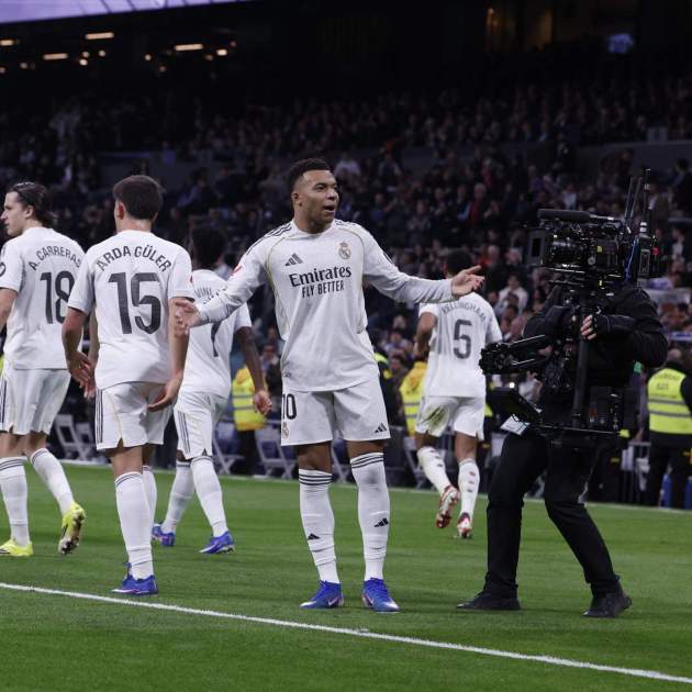 Des de l’inici de la segona meitat ja s’ha vist un Reial Madrid diferent. Més insistent en atac i acumulant aproximacions perilloses a la porteria del Llevant. Un fet que, en part, s’explica per l’entrada d’Arda Güler al terreny de joc. El turc ha donat una altra cara a l’equip i, al minut 56, ha fet una bona rematada que ha aturat Ryan. Un minut més tard, ara sí, ha arribat la jugada que ha canviat totalment el partit. Dela li ha fet penal a Mbappé, dubtós perquè el francès ja s’estava deixant caure abans del contacte, però l’àrbitre no ha dubtat a assenyalar-lo. Mbappé no ha fallat i ha situat l’1-0 al marcador.