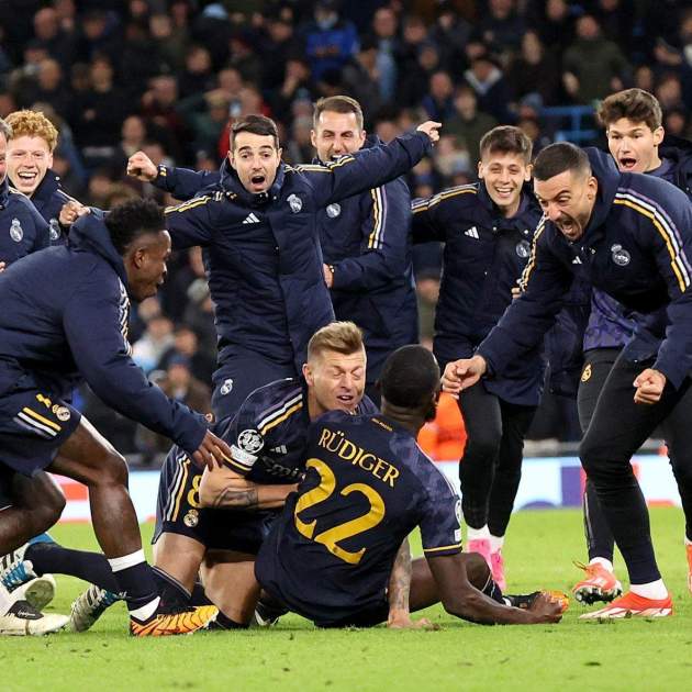 El Reial Madrid s'ha classificat aquest dimecres per a les semifinals de la Champions League en eliminar el Manchester City en un partit dramàtic que ha acabat 1-1, decidint-se en la tanda de penals. El partit ha estat un monòleg del Manchester City, que ha dominat la situació en tot moment, davant d'un Reial Madrid ultradefensiu que només ha estat capaç de generar 2 ocasions en 120 minuts. Els d'Ancelotti, però, han transformat la primera, un 0-1 suficient per tancar-se a la seva àrea i esperar que passés el temps. I s'han quedat a prop que els valgués, ja que han aguantat fins ben entrada la segona meitat, quan De Bruyne han enviat el partit a la pròrroga. El marcador no s'ha mogut més, per la qual cosa tot s'ha hagut de decidir des dels 11 metres, on els blancs han estat més encertats.