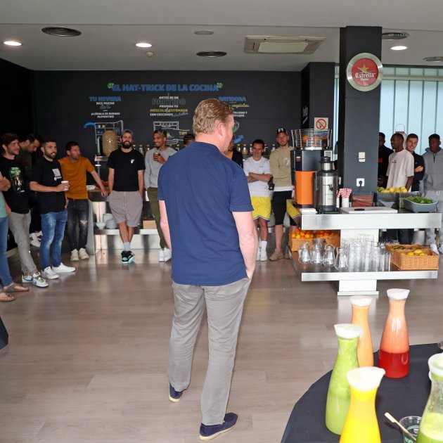 Imatge principal: Ronald Koeman fent la xerrada a la Ciutat Esportiva Joan Gamper / FC Barcelona