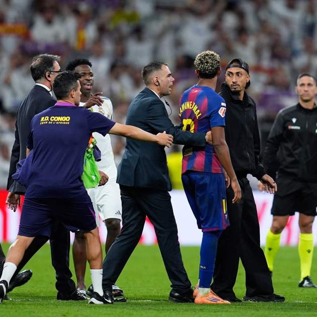 A les imatges, captades pel mòbil d'un aficionat, es veu com Raphinha es manté a certa distància de Vinícius, però quan el madridista comença a atacar Lamine Yamal amb gestos i crits, no dubta a anar a per ell, fins al punt que ha de ser aturat per membres de l'staff del Barça, que a poc a poc el van dirigint al túnel de vestidors perquè la cosa no vagi a més.