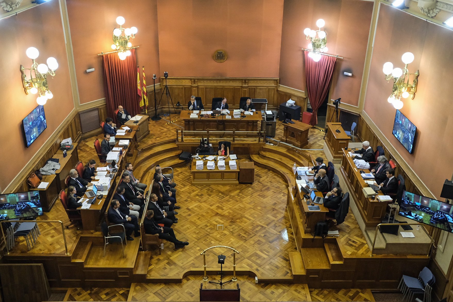 Rosell, Bartomeu i altres acusats, en el judici aquest dilluns a la tarda. /Foto: M.P.