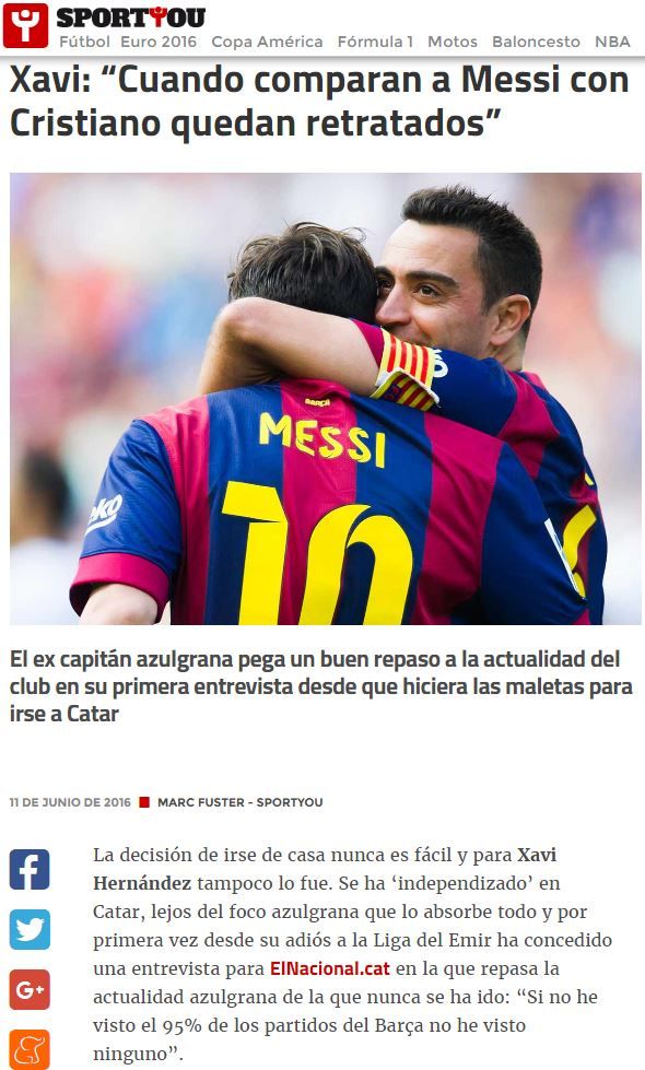 Xavi Hernández és una icona del barcelonisme i del futbol mundial. L'entrevista d''El Nacional' ha traspassat fronteres i ha arribat a Qatar, el país on juga actualment Xavi. La premsa s'ha fet ressò de les paraules de l'exjugador del Barça i la seva nova vida.