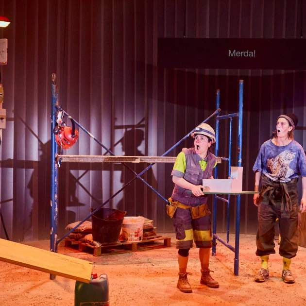 Un conte de porcs, persones i capitalisme Tres porques és la deriva perversa d’un conte infantil, una visió àcida sobre la desconnexió entre l’alegria del consum inconscient i la brutalitat dels processos de producció.