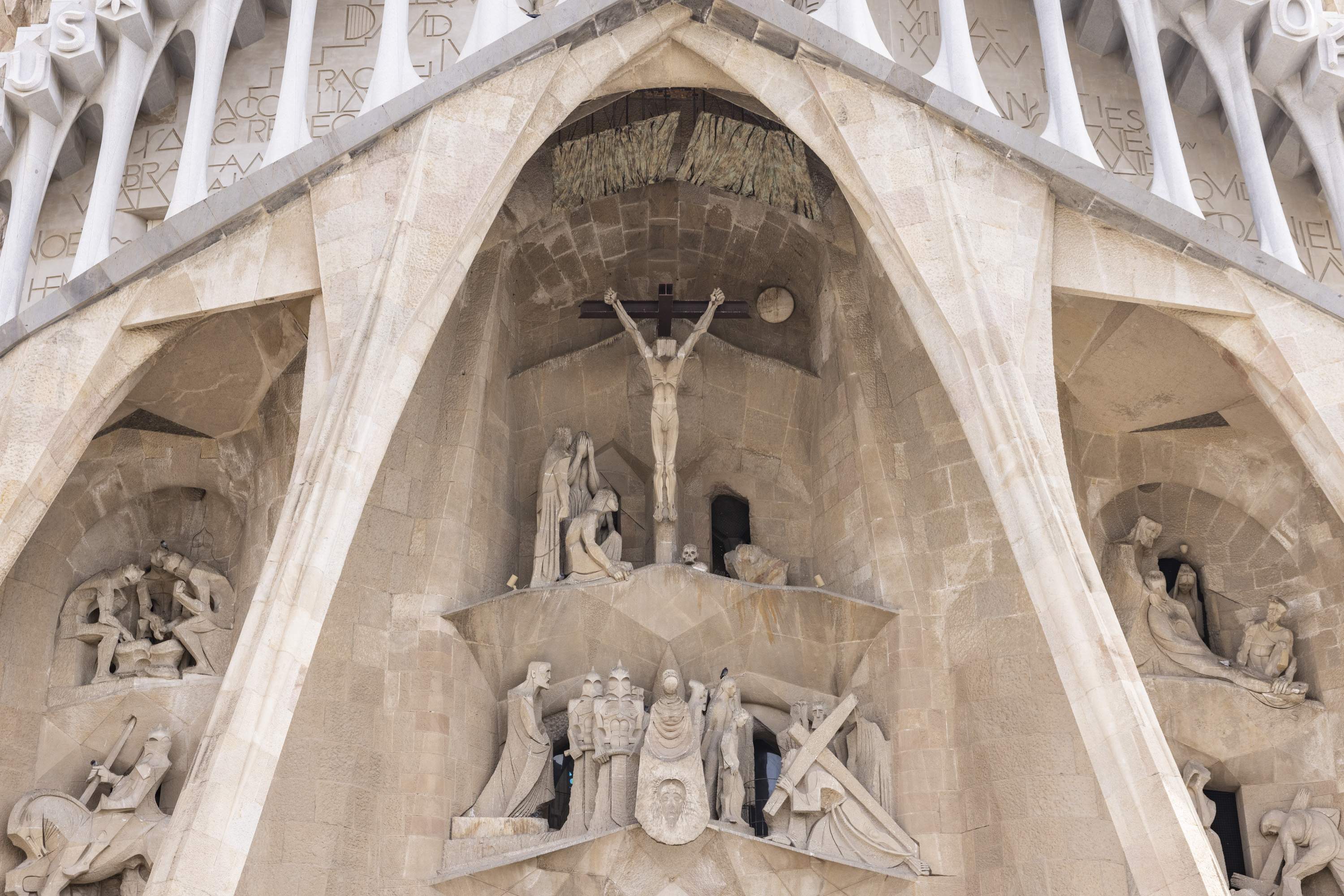 El segon braç de la creu de la torre de Jesús està orientat a la façana de la Passió
