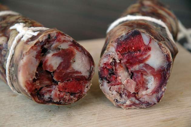 Es tracta d'un embotit sec elaborat amb costella de porc, sal i pebre. El seu sabor és intens i potent, i encara que el seu origen és domèstic, avui dia es valora com una joia culinària local.