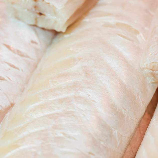 La cua també revela molt. El bacallà veritable presenta una cua en forma de “V”, ferma i angulosa, mentre que la del ling és arrodonida i més tova, sense aquella elegància anatòmica tan pròpia de l’original. Els costats del ling són més corbats i la seva carn, menys compacta. I si ens fixem en la pell, la lluerna torna a perdre el duel: les seves aletes són arrodonides i llises, davant de les del bacallà, més marcades i robustes.