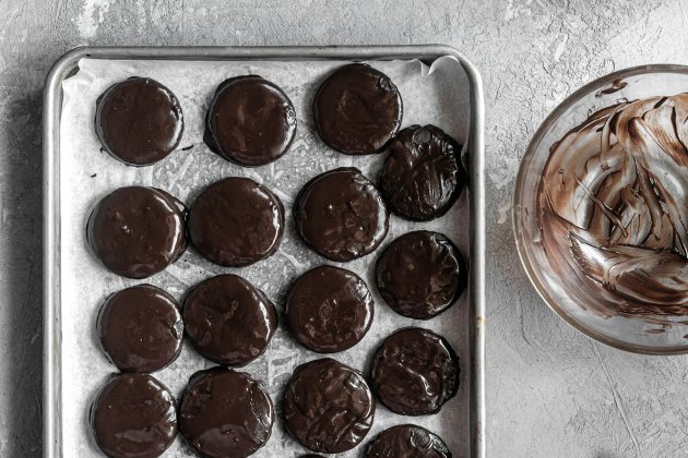 - Per a un acabat més elegant, pots allisar les vores del ganache amb una espàtula calenta o un ganivet mullat en aigua calenta.