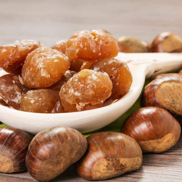 A continuació es col·loquen en una olla i es cobreixen amb aigua mineral i una beina de vainilla pura, un detall que marcarà l'aroma final del marró glacé. Es couen fins que estiguin tendres, però aquí arriba el secret que converteix un simple dolç de castanya en una peça d'alta confiteria: el procés de confitat prolongat. Les castanyes es deixen reposar en el mateix almívar i es tornen a bullir durant diversos dies consecutius, normalment uns sis dies, sempre en el mateix almívar, perquè aquest penetri lentament fins al cor de la castanya. Aquest procés pausat és el que aporta aquesta textura melosa, aquest sabor profund i aquesta dolçor equilibrada que distingeix un autèntic marró glacé.