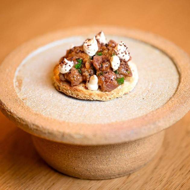 Per a aquesta edició, Zas ha reinterpretat el “Lahmacun d'Aline”, una recepta que connecta directament amb els records d'infants. El xef rememora aquells dies a l'Uruguai, quan vivia a prop d'una comunitat que acostumava a preparar aquest plat tradicional. Inspirat per aquesta memòria, Zas ha versionat el lahmacun, es tracta d'un tàrtar de vedella especiat, alineat com el farcit original del lahmacun, servit sobre una massa fina i torrada, acabat amb una emulsió càlida de moll que aporta profunditat.