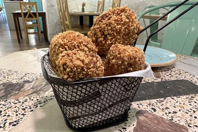 En la seva visita, en Josep Lluís tasta una mica de tot per corroborar el que centenars de persones han valorat d'aquest espai des del 2022. En primer lloc, comença per unes croquetes de pernil ibèric i de ceps amb xampinyons. Cruixents i cremoses, són l'avantsala d'un perfecte caneló de rostit amb beixamel de tòfona.