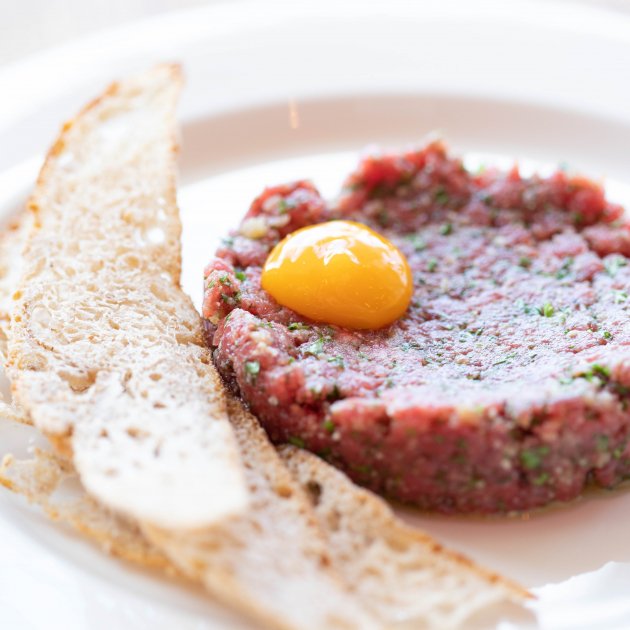Un entrant de Nadal molt senzill de fer i amb el que sorprendràs els convidats. Per a dues persones necessites 300 grams de vedella picada, una ceba, 15 grams de tàperes, mostassa de Dijon, salsa Worcestershire i un ou. Piquem la ceba i les tàperes. En un bol, barregem aquests dos ingredients amb la carn de vedella picada, la mostassa, la salsa, una mica de sal i pebre. Cobrim amb paper transparent i refrigerem durant 15 minuts. Quan emplatem, col·loquem el rovell d'un ou per sobre. Ja ho tenim! Podem acompanyar-lo d'unes torradetes cruixents de pa.
