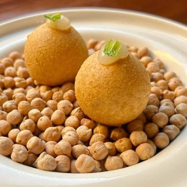 Al menú degustació proposen, entre d’altres, un extraordinari pagre amb la seva bullabessa, bledes, gelatina de ratafia i praliné de nous —combinació guanyadora, peix, verdura i fruits secs—, o un verat marinat amb sal i sucre sobre cruixent d’alga wakame gustosíssim, i a la carta, per exemple, per 12 € tens un espectacular xai amb pera al vi, puré de moniato i rocoto (un pebre vermell picant originari d’Amèrica Llatina): aquí la melositat del coll casa de primera amb el picant i la dolçor.