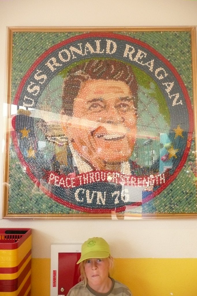 Retrat de Ronald Reagan amb el lema «Peace through strength», tot fet amb jelly beans. La pau armada de gominoles i armes atòmiques. Foto: Flickr