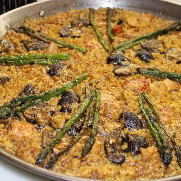 Quan noteu que li queden uns 5 minuts, decoreu la paella amb els espàrrecs per sobre.