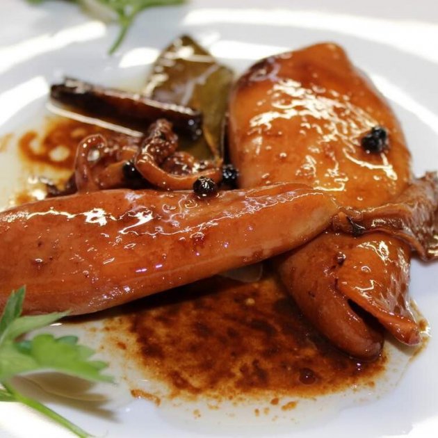 Els que ens seguiu, coneixereu el Carutx, plat tradicional català fet amb costella de porc i moscatell. Doncs avui, us presento la versió feta amb calamar. Amb el carutx original s'utilitza llard, però avui, per a no afegir greixos d'animal, us recomano fer ús d'oli d'oliva per cuinar aquest plat.