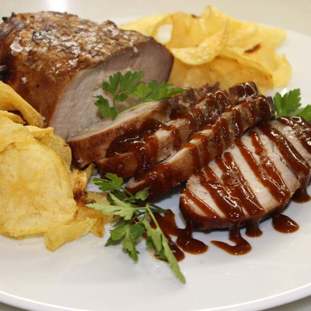 Regala als teus convidats una recepta deliciosa que, un cop feta, podràs presentar de moltes formes: amb trumfada de patata, amb verduretes a la planxa, amb unes patates a l'estil pobre, fregides, xips, amb salsa barbacoa, amb salsa rocafort o fins i tot amb melmelada o Mostarda de Cremona. Aquest llom, tallat ben fi, el podràs utilitzar per fer entrepans amb formatge gratinat. Si, és porc, però si el fas bé, no quedarà pas eixut i resultarà sucós en boca.