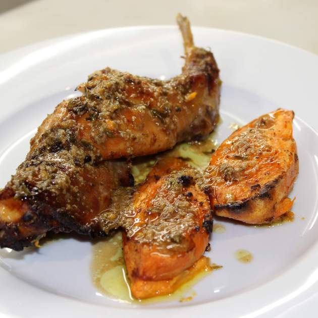 Ara, unta bé el conill per les dues bandes, amb paciència. Deixa adobar la carn un mínim d'una hora a la nevera. Ho pots preparar el dia anterior també.