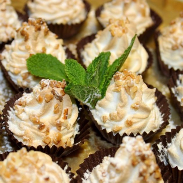 Utilitzaré uns petit-fours de paper fosc i així destacarà més sobre el blanc de la merenga.
