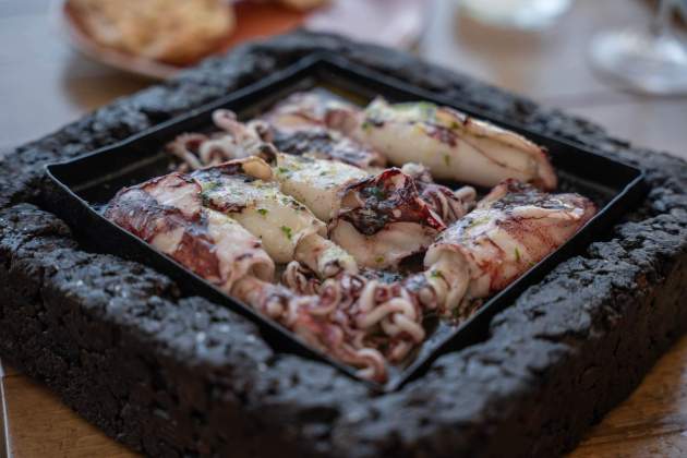 Si s'escull Aiguablava, allà es troba una joia que atrau tant els banyistes com als comensals que s'hi desplacen només per menjar: Toc al Mar. Regentat per en Santi Colominas (a la cuina) i la Sandra Baliarda (a la sala), aquest restaurant encapsula la màgia que anticipàvem a indrets únics com Begur. El matrimoni s'hi va establir ara farà 13 anys, convertint una barraca de pescadors que els havia ofert un client, en l'ampli restaurant que és avui. Van fer el salt des de Barcelona, on tenien un restaurant de cuina catalana ben reputat al carrer Girona, el Toc, i amb aquest acte de fe, arriscat i valent, van trobar un projecte de vida que actualment (i en època forta) fa feliços uns 420 comensals per servei. Els migdies al Toc al Mar són bullici, arrossos, cuina marinera en forma d'entrants, calor acaronadora i brisa gratificant, però a les nits, la tènue il·luminació acull a gurmets que busquen les millors peces de la llotja cuinades amb el màxim respecte al seu sabor. Dos escenaris i un denominador comú: el foc.