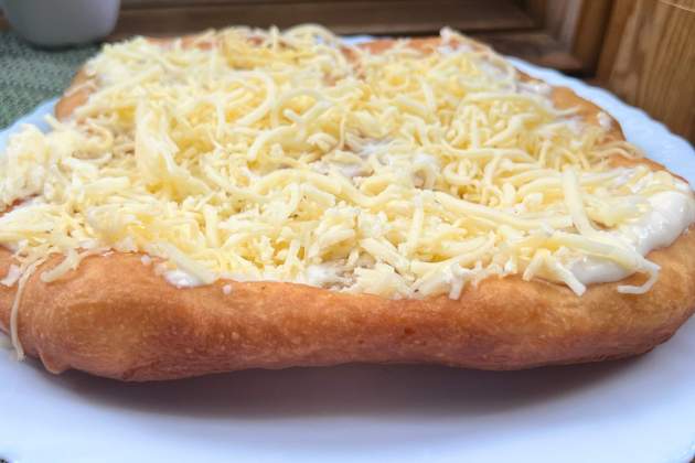 Com a aperitiu, el formatge fregit —també tenen una versió de formatge marinat—, acompanyat d’una amanida russa on els cogombrets s’hi fan notar positivament. A més, el lángos eslovac, una massa fregida de pa sobre la qual s’unta crema agria, una quantitat ingent d’all (mai sobrera pel plaer, però perenne al paladar 12 hores més tard) i formatge, acompanya la segona cervesa, aquest cop en gerres amples, pesades i contundents, tal com un se sent després d’engolir tota aquesta cervesa i tot aquest tiberi extraordinari, un trosset magnífic d’aquell país que tenim la sort de poder gaudir ben a prop de casa.