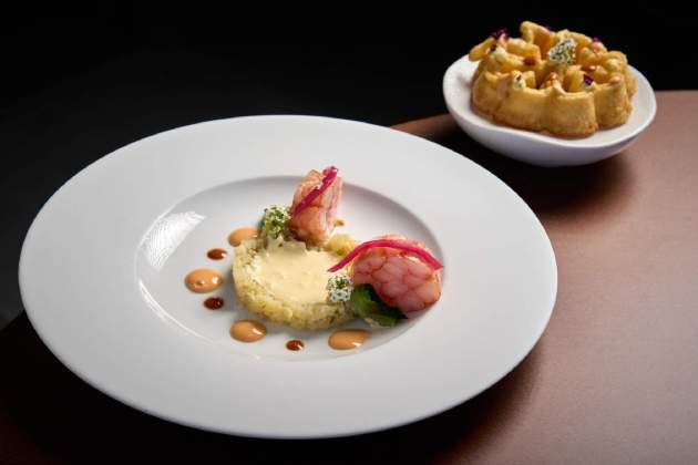 "Hem volgut incloure dues propostes que sabem que entusiasmaran els comensals que triïn l'opció del menú degustació maridat", anuncia. Es tracta del salmó marinat amb iogurt, tòfona i mel de canya o el cilindre de formatge blau amb praliné d'avellanes i pera fumada. Els seus maridatges sensacionals, firmats pel celler Familia Torres, subratllen els sabors i matisos d'aquestes propostes d'una manera sublim. I, per acabar, inclouen a la carta unes postres amb què han volgut retre homenatge a Auguste Escofier versionant el seu icònic Pêche Melba, amb el màxim rigor i respecte.
