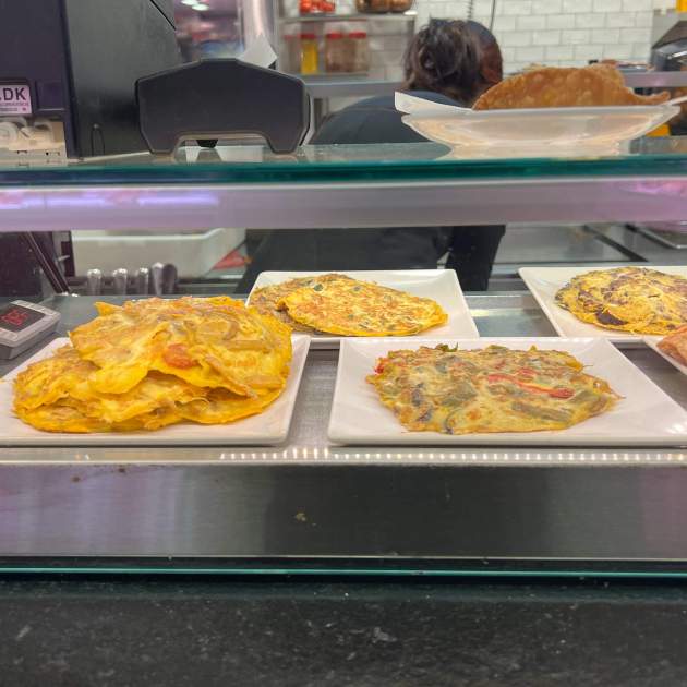 Les truites del Ket són petites en diàmetre i molt fines, gairebé com un d’aquells pancakes americans, amb la diferència que són molt variades: n’hi ha de bacallà amb pebrot, de carabassó, de xistorra amb patates fregides, de botifarra negra, de carxofa, etc. Davant de la truita gruixuda i en diversos graus de liquiditat, la supervivència de la truita feta així, prima i daurada, em sembla un triomf.