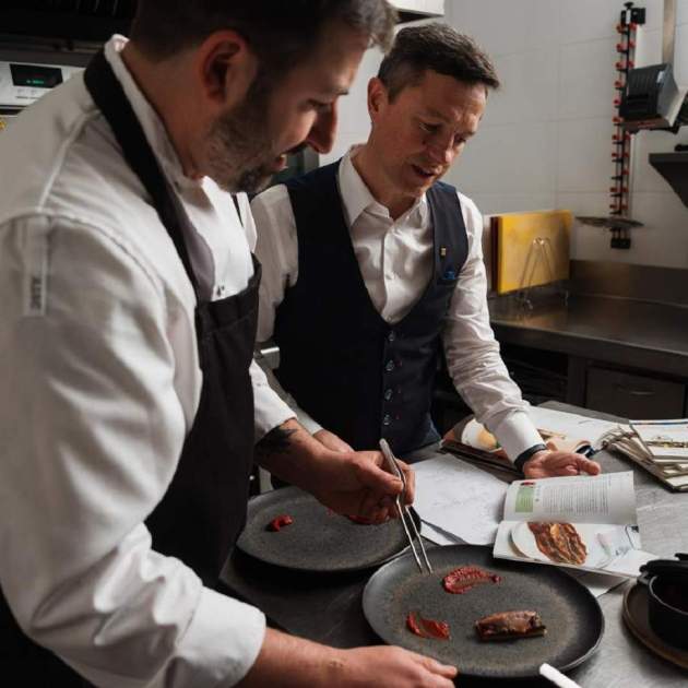 Però no és aquest menú el que avui m’asseu a la taula. Entre les novetats d’aquesta gran casa no només s’hi poden trobar les formals, també les d’oferta gastronòmica: el menú Tradició, que podia equiparar-se a un menú migdia, ara és el Setmanal, només disponible els migdies i inclou 2 entrants, 2 principals, begudes (vi, aigua i cafè) i les postres. L’enfocament continua sent el mateix: plats del Corpus de la Cuina Catalana amb llicències a les tradicions d’altres corpus. A les nits (les d’entre setmana i els dissabtes), els plats es compartiran: el menú Compartir està pensat perquè així sigui, comprenent 4 plats, les postres i beguda per 50 €.