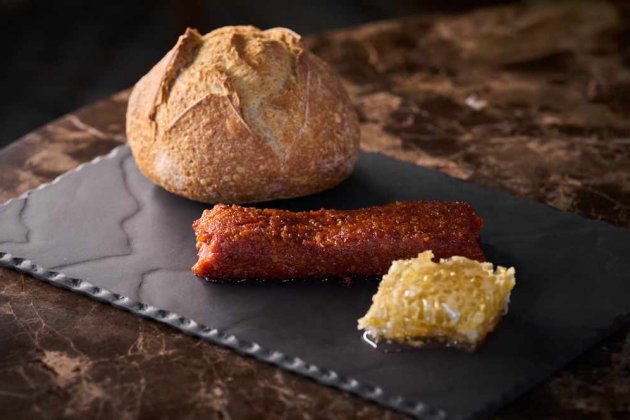 Presidint la vistosa cuina vam poder veure un ventre sencer de sobrassada ibèrica de Mallorca, no era una sobrassada qualsevol, aquesta era una de les sobrassades més prestigioses d'Espanya, elaborada pel mestre xarcuter Xesc Reina. Juntament amb una bresca de mel natural i acompanyats ambdós d'un pa de cine, van ser els preludis d'un àpat que no va deixar indiferent a ningú. Plats com: uns bunyols de bacallà, fets al moment i que no tenien res a envejar als de moltes àvies. Una espectacular olla amb Mongetes de Santa Pau amb botifarra del perol, presidit per una coca cruixent de peus de porc amb escamarlans, va seguir aquest sorprenent menú.