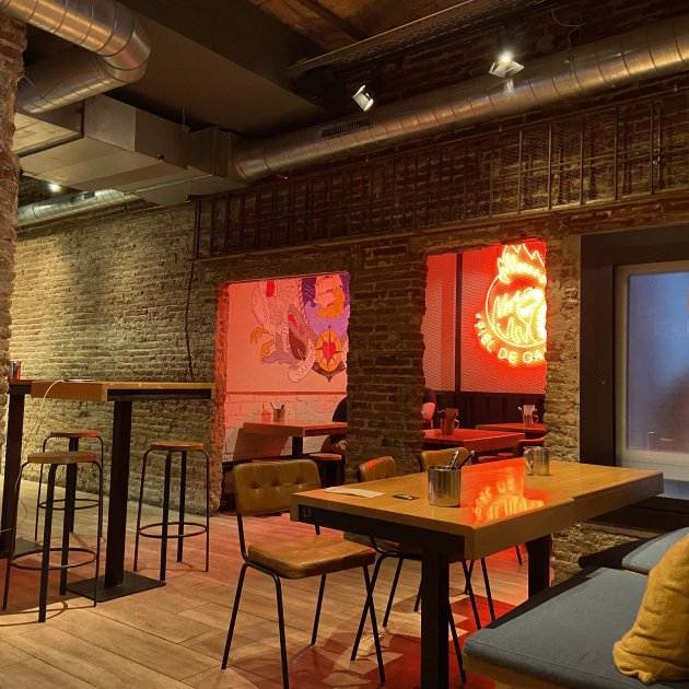 El restaurant està situat a dos minuts de la parada de metro del Clot, al número 7 del carrer de la Sèquia Comtal. Davant del restaurant hi ha una petita terrassa amb quatre taules que conviden a fer un beure i unes braves. Un cop dins, l’espai sembla petit, amb una barra a mà dreta i un passadís estret on només hi ha tres o quatre taules a l’esquerra. És un espai amb una llum tènue i les parets de maó, com una fàbrica industrial del segle XIX, però amb alguna pintada i llums de neó que li donen un toc modern. A mesura que entrem, però, l’espai amaga una sala amb sis o set taules més i veiem que és més gran del que sembla des de fora.