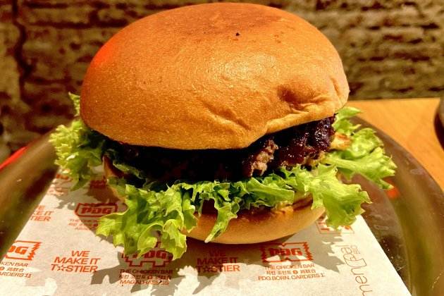 Pròxima parada, Clot, correspondència amb, hamburguesa de vedella, pollastre arrebossat i patates fregides de moniato. Al Burger Bar hi trobareu el bo i millor del fast food - hamburgueses gruixudes de tacar-te la samarreta - però sense les presses d’una cuina que només vol despatxar clients. Molta gana, bona companyia i una estona per menjar és tot el que necessiteu per gaudir al màxim d’aquest restaurant al barri del Clot.