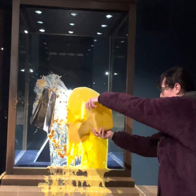 Quatre persones han estat detingudes aquest dissabte al matí després de llançar pastís de poma i crema contra la vitrina que protegeix la Corona Imperial de l’Estat a la Torre de Londres. L’acció reivindicativa ha tingut lloc pocs minuts després de l’obertura del recinte i ha provocat el desallotjament immediat dels visitants i el tancament provisional del recinte. Els fets s’han produït dins del Waterloo Barracks, on es conserven les joies més preuades de la corona britànica, i han causat gran estupefacció entre els turistes i els Beefeater, els emblemàtics guardians del lloc. Els gestors del museu han assegurat que cap peça ha patit danys i que les forces de seguretat han actuat amb rapidesa.