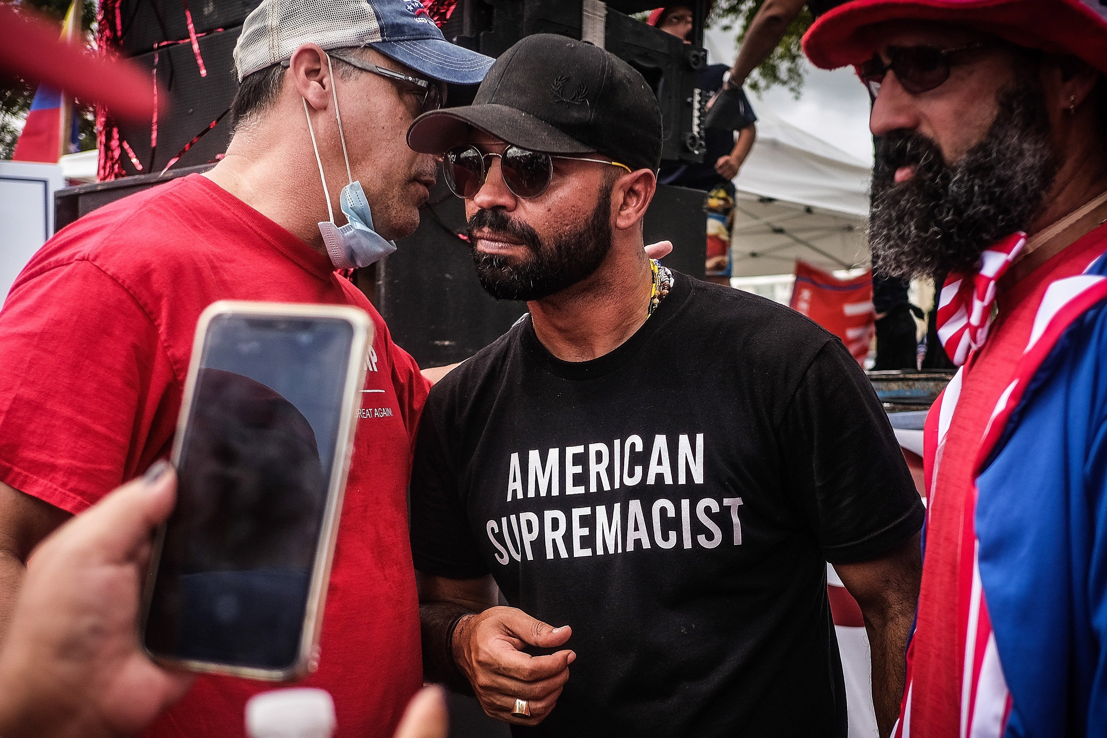 Fotografia principal: Enrique Tarrio, el líder de Proud Boys, a una manifestació de Latinos for Trump / Efe