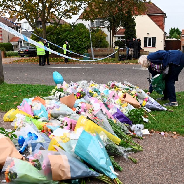 Imatge principal: Una dona amb flors al costat de l'escena del crim on el diputat Sir David Amess, va morir apunyalat a Leigh-on-Sea, Gran Bretanya, el 16 d'octubre de 2021. / Efe